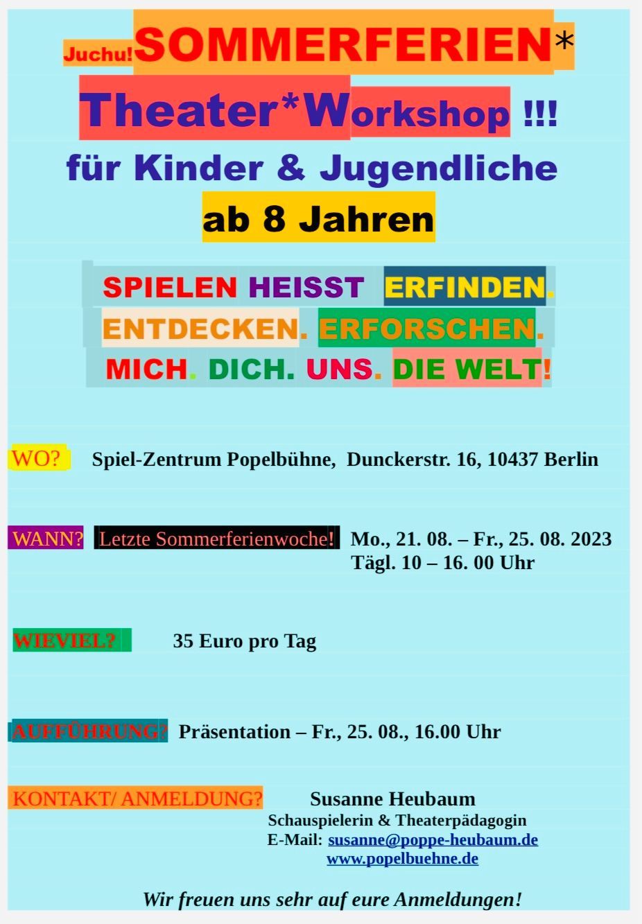In der letzten Sommerferienwoche laden wir euch zu unserem Schauspiel - Theater - Workshop ein.